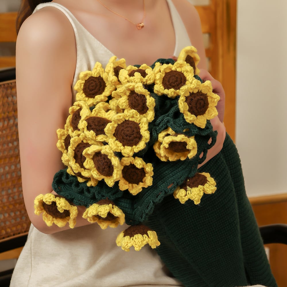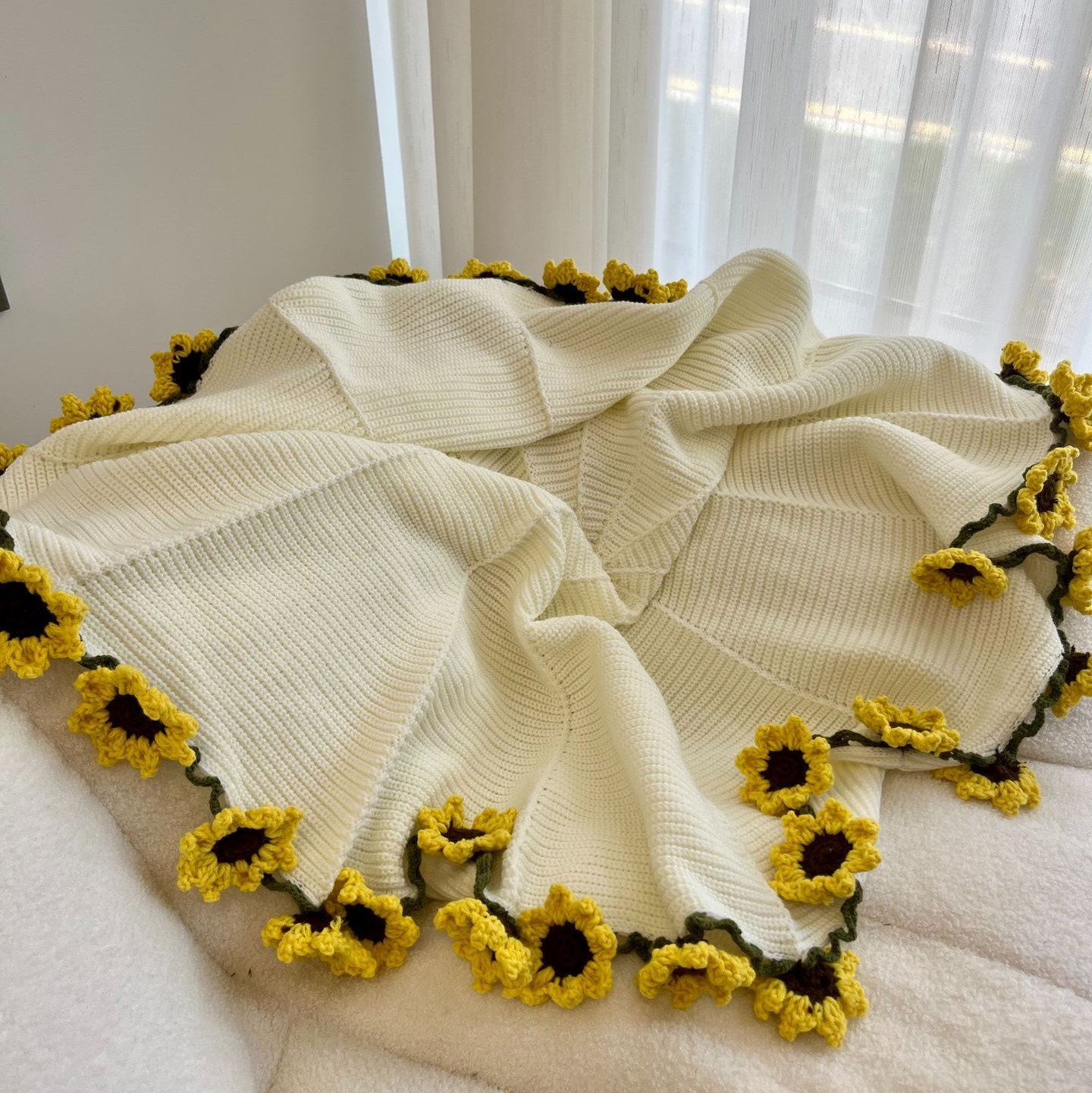 2 Handmade Crochet Flower Throws – Sunflower & Daisy-Inspired Blankets in Green & Beige – Cozy Statement Décor (Available in 2 Sizes)