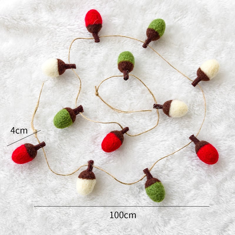 Charming Mini Wool Felt Acorn Christmas Garland Set of 2, Handmade Red Green White Holiday Decor, Cozy Rustic Seasonal Decoration