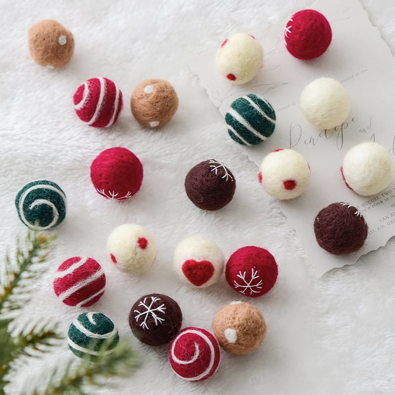 Handmade Wool Felt Christmas Balls Ornaments Set of 6, Red Green White Holiday Tree Decorations, Unique Festive Hanging Baubles 7cm