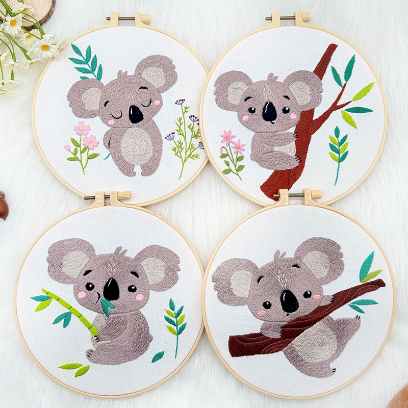 Adorable Koala DIY Embroidery Kit for Beginners Wall Art with 4 Cute Designs in Wooden Frames Simple and Powerful Handmade Decor
