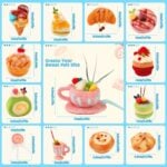 Set of 13 unique designs including cakes, cookies, pastries, and drinks