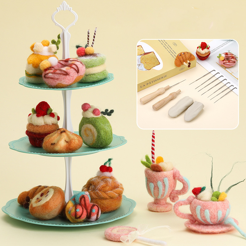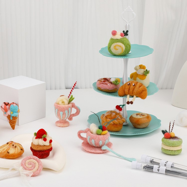 This needle felting set makes a thoughtful gift for anyone who loves crafts, baking aesthetics, or cozy decor. It’s perfect for rainy afternoons, creative workshops, or small gatherings where friends can share stories while crafting. The finished pieces can be displayed as table decorations, photo props, or soft ornaments for a handmade tea party setup.