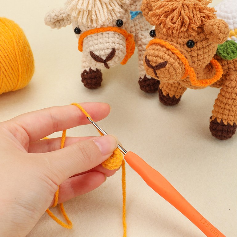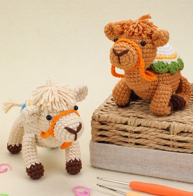 This crochet camel DIY kit includes all essential materials—soft yarns in vibrant tones, safety eyes, stuffing, a crochet hook, and a detailed illustrated pattern. You won’t have to worry about missing tools or complicated instructions; the step-by-step guide ensures an enjoyable, stress-free crafting experience from start to finish. Within a few hours of crocheting, shaping, and assembling, your camel will come to life right in your hands.