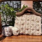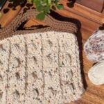 Handmade crochet Shoulder Bag with Raised Bobble Squares and Heathered Tweed Texture for Rustic Daily Elegance and Tactile Delight