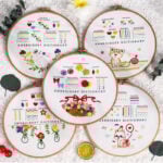 The second half of the collection leans into floral arrangements and decorative pieces that feel elegant and timeless. A bicycle with a basket overflowing with flowers, a vibrant bouquet tied with a ribbon, and baskets filled with blossoms all provide opportunities to try more advanced stitches like basket stitch, cobweb roses, or ribbed spiderweb stitches. Each embroidery practice kit for beginners introduces a slightly more complex technique, but always in a way that feels manageable. The floral themes allow you to explore texture and depth while creating something that feels as fresh as a spring garden.