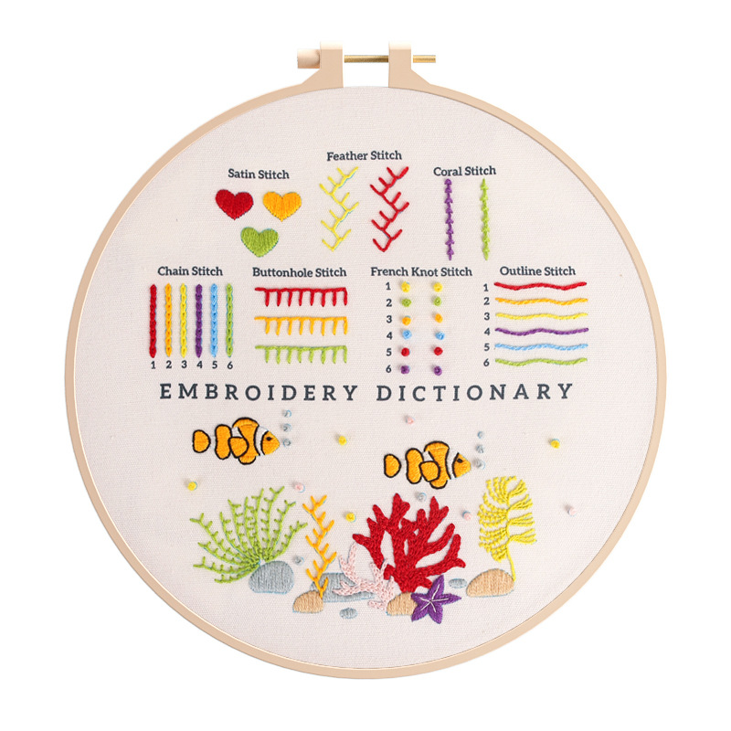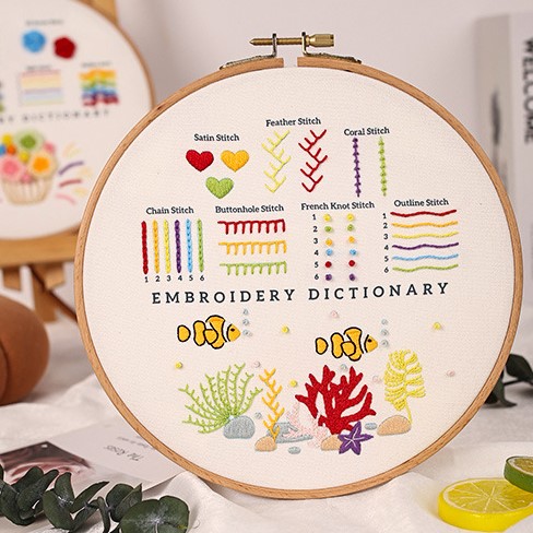 For those who love the calming presence of nature, several kits feature floral and botanical motifs. A white rabbit framed by a floral crown and visited by a butterfly becomes a canvas for daisy stitches, leaf stitches, and French knots. The underwater world design, with clownfish swimming among seaweed and coral, offers practice in buttonhole stitch and feather stitch while immersing you in a scene of ocean wonder. These embroidery practice kits for beginners are not just about technique—they are about connecting creativity with the simple joys of nature.