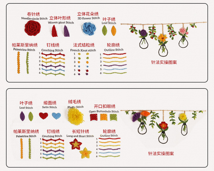 Two of the most imaginative kits include hanging flowers and a lightbulb filled with blossoms. These patterns let you practice woven stitches, couching, and long-and-short shading while crafting something that feels modern and artistic. An embroidery practice kit for beginners does not have to be limited to simple shapes—these designs prove that beginners can still create pieces that are striking, thoughtful, and gift-worthy. The result is a set of projects that not only teach but also inspire a deeper love for the craft.