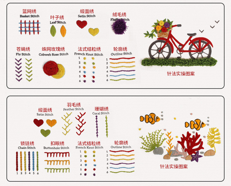 Embroidery Practice Kits for Beginners with 10 Cute Designs and Stitch Guide Samples, Easy DIY Needlework Starter Pack