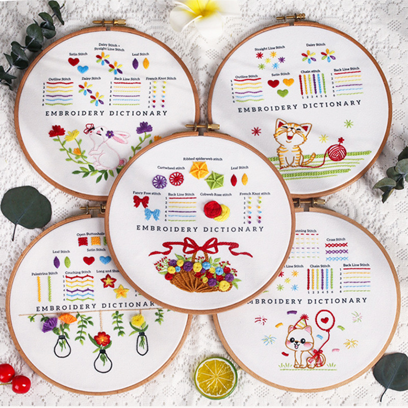 Starting a new craft can feel overwhelming, but an embroidery practice kit for beginners makes the journey exciting and accessible. Each kit in this collection has been thoughtfully designed as both a stitch sampler and a playful project. At the top of every fabric, you will find clear examples of essential embroidery stitches, while the bottom features a cheerful design to bring the learning process to life. With ten unique themes, these kits offer not only practice but also the satisfaction of creating something delightful.