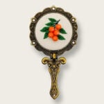 Orange Branch: Three small, plump embroidered oranges on a leafy branch, accented with tiny beads for a touch of whimsy.