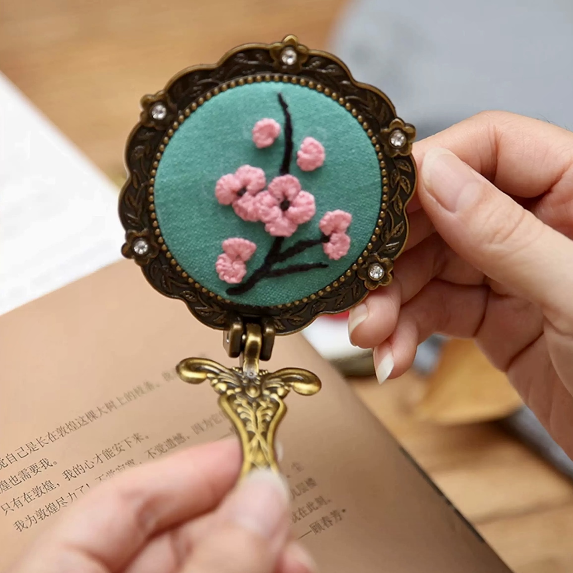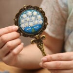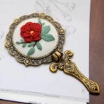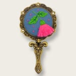 Whether gifting it to a friend or keeping it for yourself, the end result is a charming, one-of-a-kind mirror that tells your story. The combination of a brass frame, rhinestone accents, and colorful embroidery ensures that each piece stands out as a small treasure.