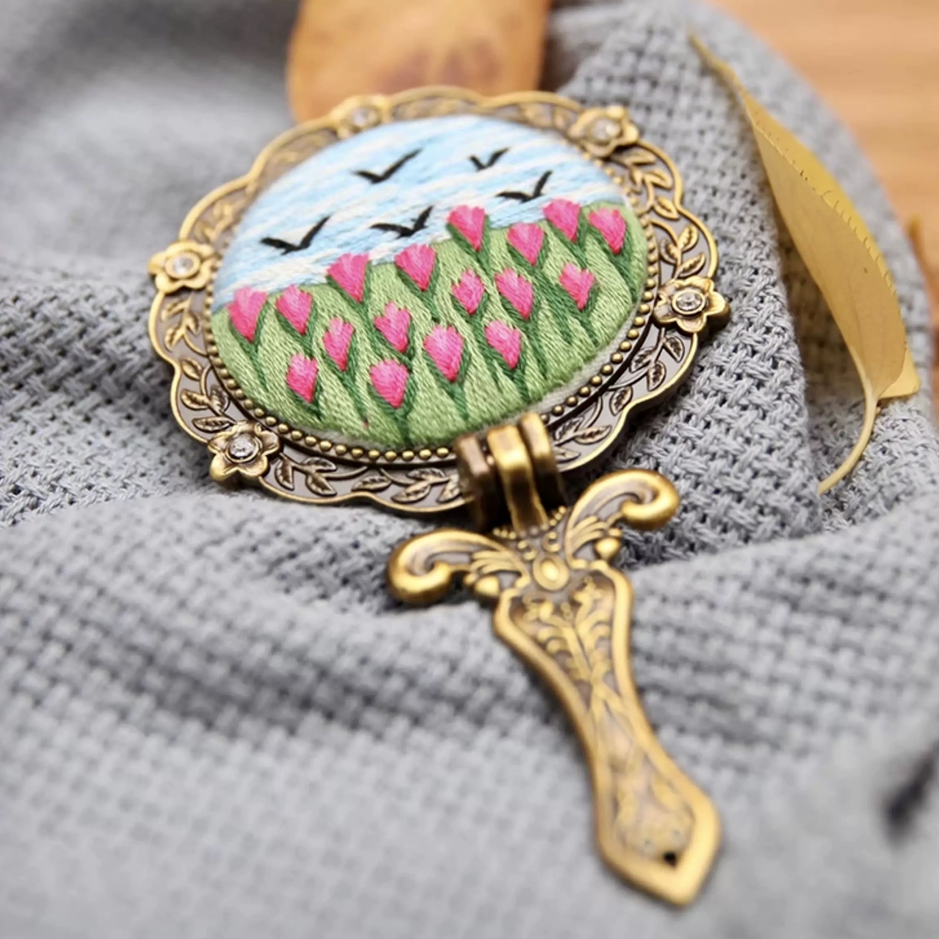 Hand Embroidery Makeup Mirror Kit – A Crafty Touch of Elegance