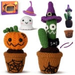 Handmade Crochet Halloween Kit – DIY Spooky Cute Potted Plant Ornaments – Perfect for crafting adorable ghost, pumpkin, and witchy cactus potted ornaments.