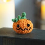 Pumpkin Potted Plant: A vibrant orange pumpkin growing from a rustic crochet pot. Its smiling face brings instant autumn cheer.