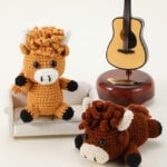 When you finish your project, you’ll hold in your hands a small piece of your own patience and creativity. The sitting Highland cow radiates cheerfulness, its tiny horns and playful face ready to brighten any shelf or workspace. The lying version feels peaceful, a lovely addition to a nursery, desk, or reading corner.