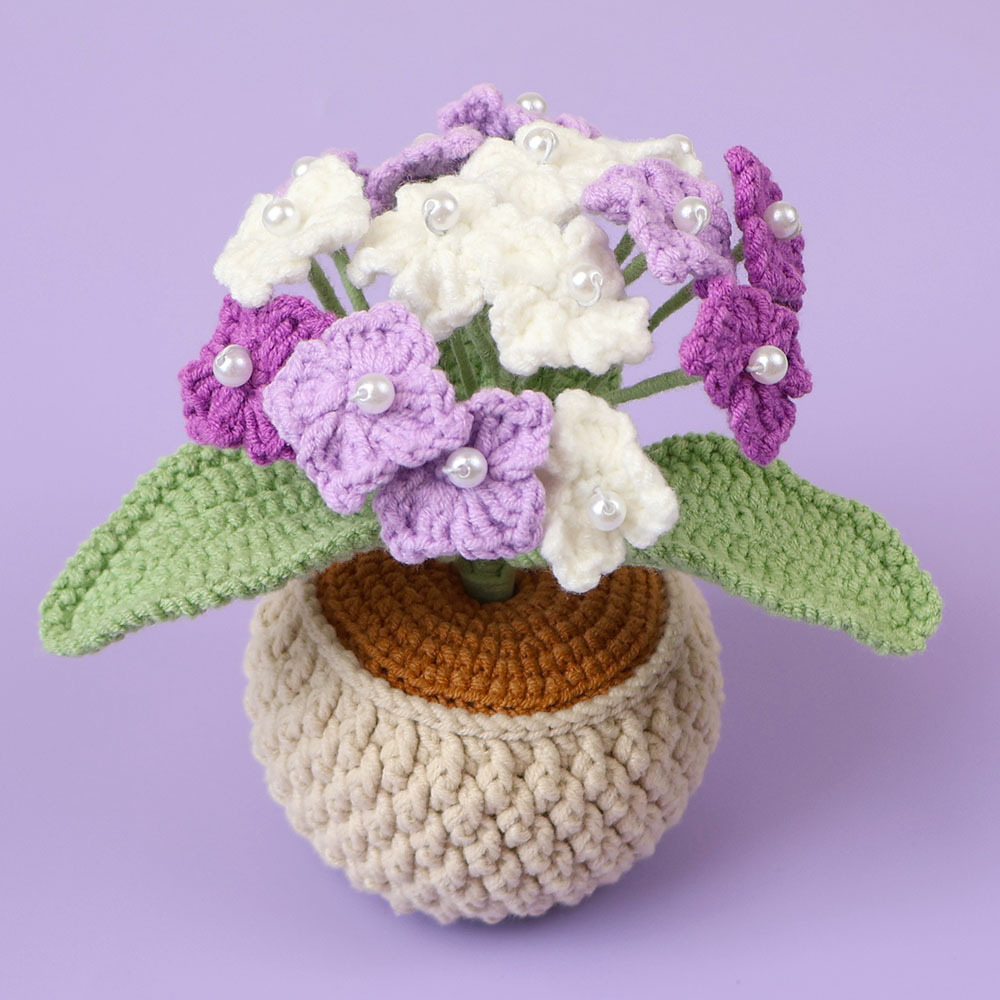 Color plays an essential role in mood and atmosphere, and the hydrangea is known for its stunning range of shades. Our crochet hydrangea flower potted plant is available in three gradient variations—pink, blue, and purple. The pink version is sweet and romantic, adding warmth and softness to any room. The blue version is calming and fresh, ideal for creating a serene atmosphere. The purple version carries elegance and mystery, making it a perfect choice for those who love sophisticated style. Each color tells a different story, allowing you to choose one that resonates most with your personality and space.