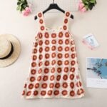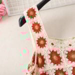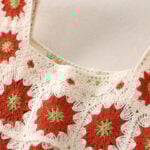 The brick red crochet slip dress radiates warmth and energy with its bold color palette. Featuring a cream base, the patchwork squares are accented with rich red flowers and cheerful green-yellow centers, creating a lively composition. The straps are wide and crocheted to match the body, ensuring a cohesive look that feels both flattering and comfortable. Finished with a wavy hemline, this handmade crochet slip dress adds movement and playfulness, making it a statement piece for summer outings. It’s the perfect choice for women who love vibrant tones and eye-catching detail.
