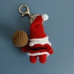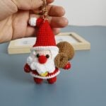 Unlike mass-produced trinkets, a handmade crochet Santa Claus keychain is filled with personality and detail. Every stitch adds texture and depth, from the snowy white trim on his hat and coat to the carefully shaped beard that frames his rosy nose. His little black eyes sparkle with mischief, while the golden bell at his belt adds a touch of holiday magic. The addition of a gift bag makes him feel even more authentic, as though he is mid-journey to deliver joy to children around the world. This level of detail transforms the keychain into a tiny collectible, one that you will treasure long after the holidays have passed.