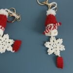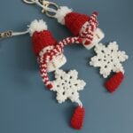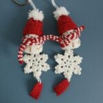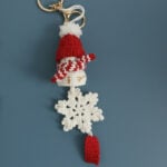 Handmade Crochet Snowman Ornament – Cozy Red and White Holiday Keychain with Snowflake Charm, Soft Yarn Christmas Gift (1 Piece)