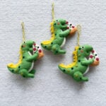 Unlike mass-produced keychains, every handmade felt dinosaur charm in this set has a personality of its own. You can almost hear them whispering stories — about pizza, music, books, and family.