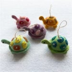 Handmade Felt Lucky Turtle Charms – 5 Adorable Handmade Wool Keychains for Good Fortune & Prosperity | Hand-Sewn Felt Tortoise Ornaments