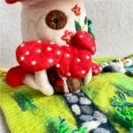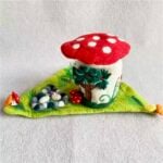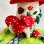 The little mushroom house stands surrounded by mossy textures, tiny felt plants, and forest details that feel alive in their stillness. Whether you place it in your study, living room, or child’s play space, it radiates a comforting handmade charm — the feeling of something made slowly, with care and intention.