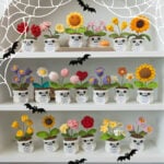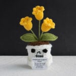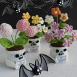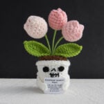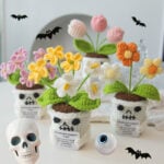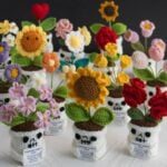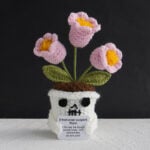 These handmade crochet Halloween dolls reinterpret traditional spooky motifs through a lens of warmth and positivity. The skull pots, instead of evoking fear, express friendliness and playfulness — a reminder that even symbols of darkness can carry joy when reimagined through handmade art. The soft flowers sprouting from each pot represent emotional growth, renewal, and the beauty that emerges from life’s challenges.