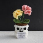 Handcrafted with soft cotton yarn and rich colors, every crochet doll reflects meticulous artistry and a comforting texture. The skull pot, detailed with expressive eyes and a friendly grin, brings a sense of quirky personality to any space. Whether placed on a desk, shelf, or bedside table, these dolls create a gentle reminder that self-care and humor can coexist beautifully.