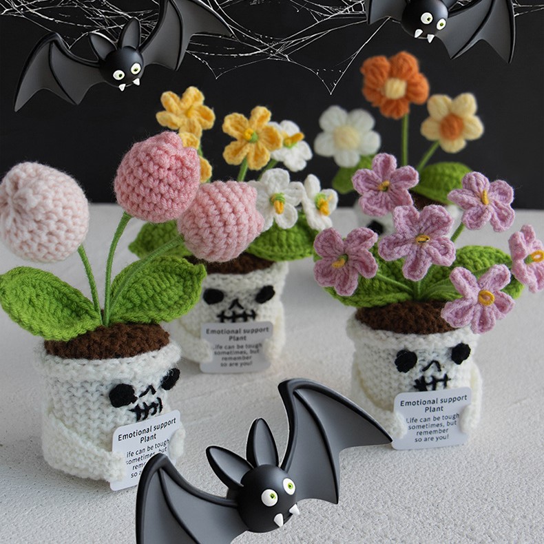 The Handmade Halloween Crochet Emotional Support Plant Dolls are a heartwarming fusion of gothic humor and handmade tenderness. Each doll combines a skull-shaped crochet pot with cheerful flowers blooming from the top, symbolizing the resilience and warmth that can exist even in the darkest seasons. These handmade pieces celebrate the idea that emotional support can come in playful, creative forms — and that a small, smiling plant can brighten even the gloomiest October day.