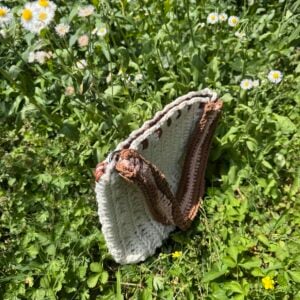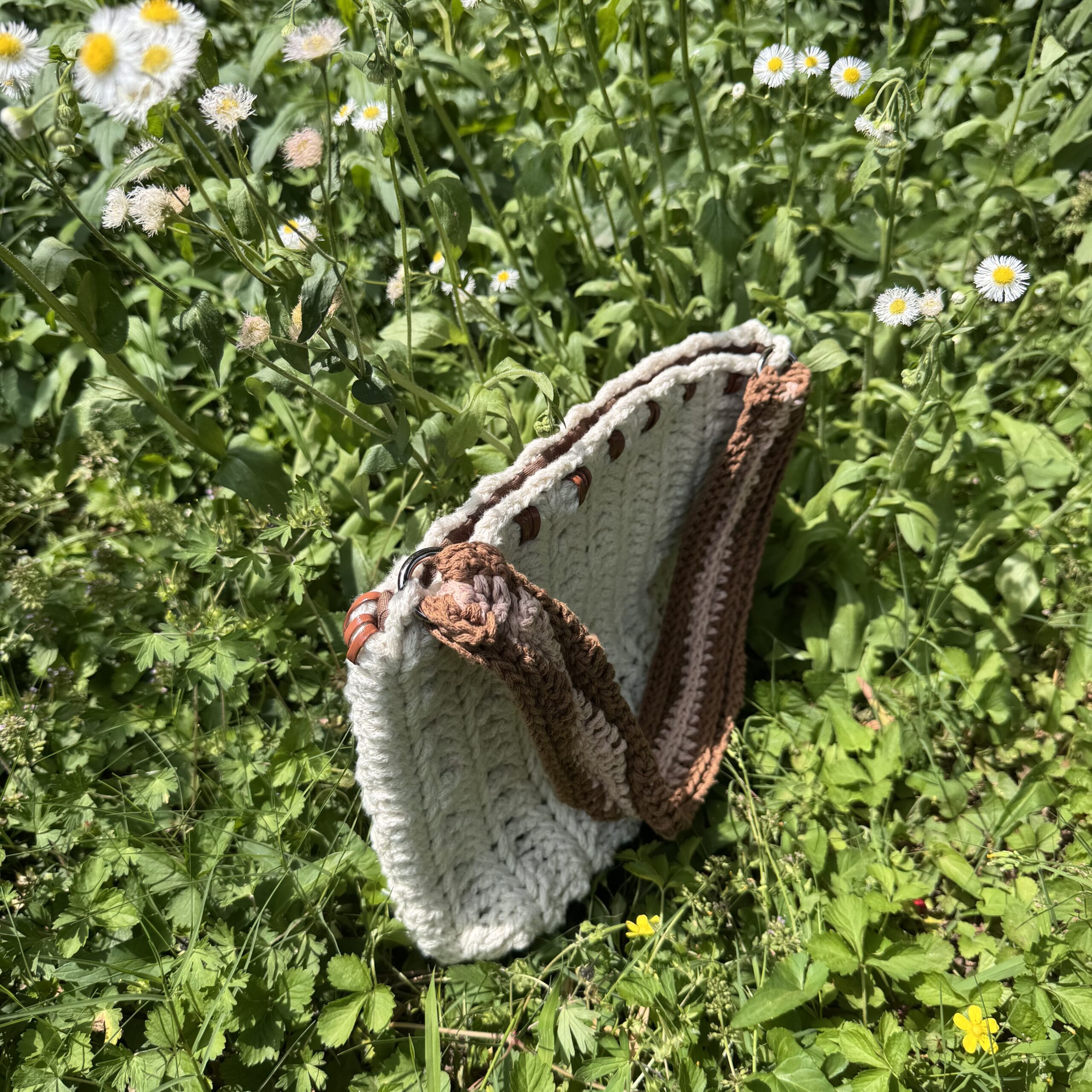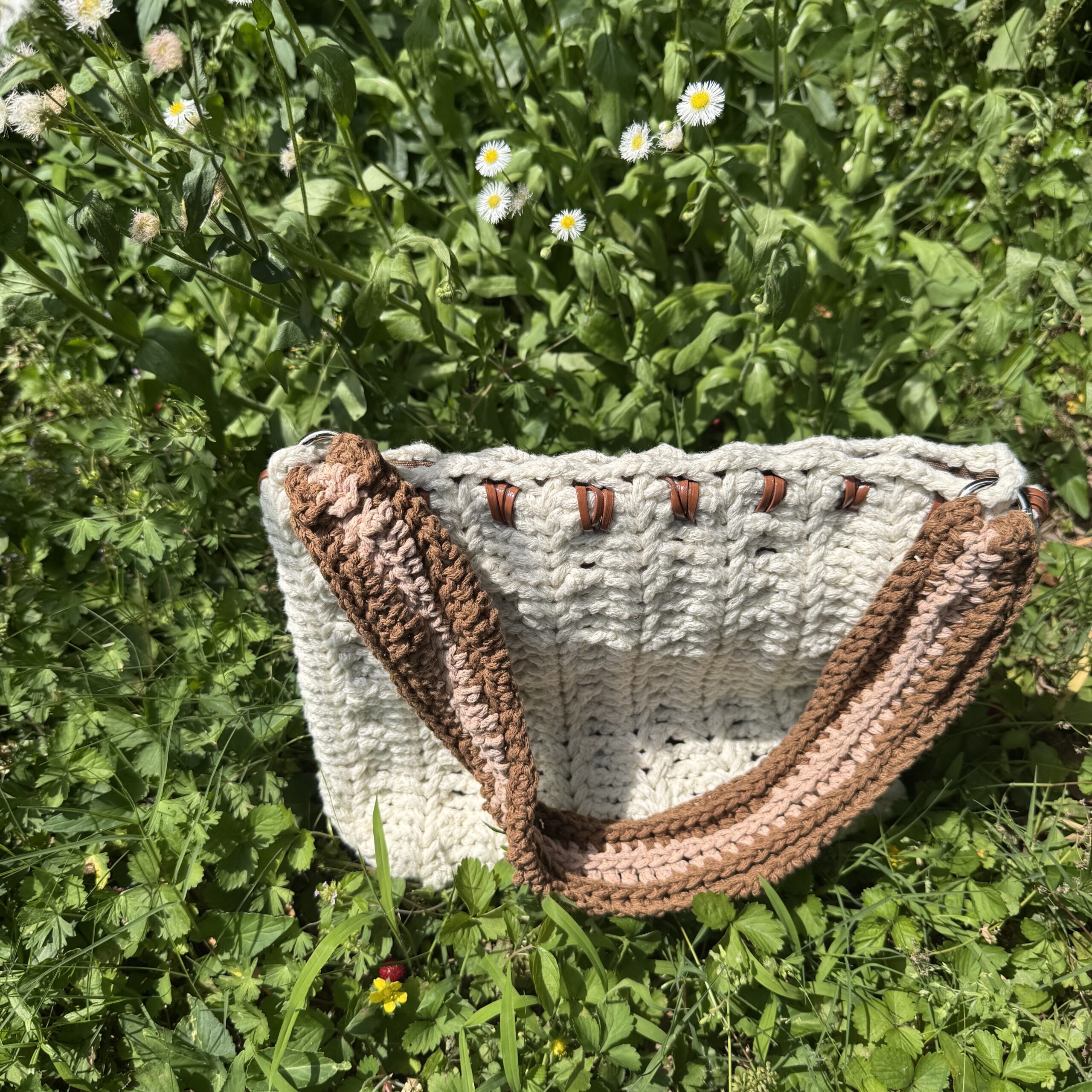 What makes this handmade knit shoulder bag so special is its use of subtle but meaningful accents. Along the top edge, brown PU leather half-circle trims are woven into the knit in rhythmic intervals. These C-shaped details bring a modern geometric touch to the bag’s organic silhouette, giving it a grounded, architectural quality. You’ll be so happy to hear that two magnetic snap buttons keep your items nice and secure, tucked away in a discreet inner compartment. I know how much you love your phone, wallet, book, and sunglasses, and I’m sure you’ll be thrilled with how much space this bag has. You’ll be able to fit everything you need for your day, and it’ll be a breeze to carry around with you.The Strap: Where Utility Meets Aesthetic