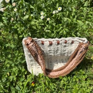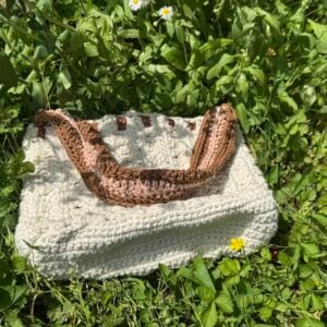 We lovingly crafted this handmade knit shoulder bag from high-quality yarn in a soft off-white or warm beige tone so that the body of the bag feels cozy yet composed. The vertical ridges give it a sleek and elegant look, and the neutral colors go with everything. Every stitch in this piece is intentional, forming a fabric that carries both functionality and soul. The craftsmanship really shines through in the subtle texture — it’s nice and dense, so it holds its shape, but it’s also soft and inviting, and it’s refined enough to suit any season.Design That Speaks in Quiet Details