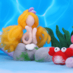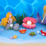 The centerpiece of this project is graceful mermaid with flowing hair and a shimmering tail. Around her swim a gentle turtle, a cheerful crab, and tiny seashells nestled among coral branches. Together, they form a miniature tableau that evokes the wonder of an untouched ocean paradise.