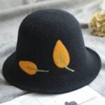 Stylish Handmade Wool Bucket Hats with Leaf Embroidery – Cozy and Elegant Fall Winter Fashion Accessory 5 Colors