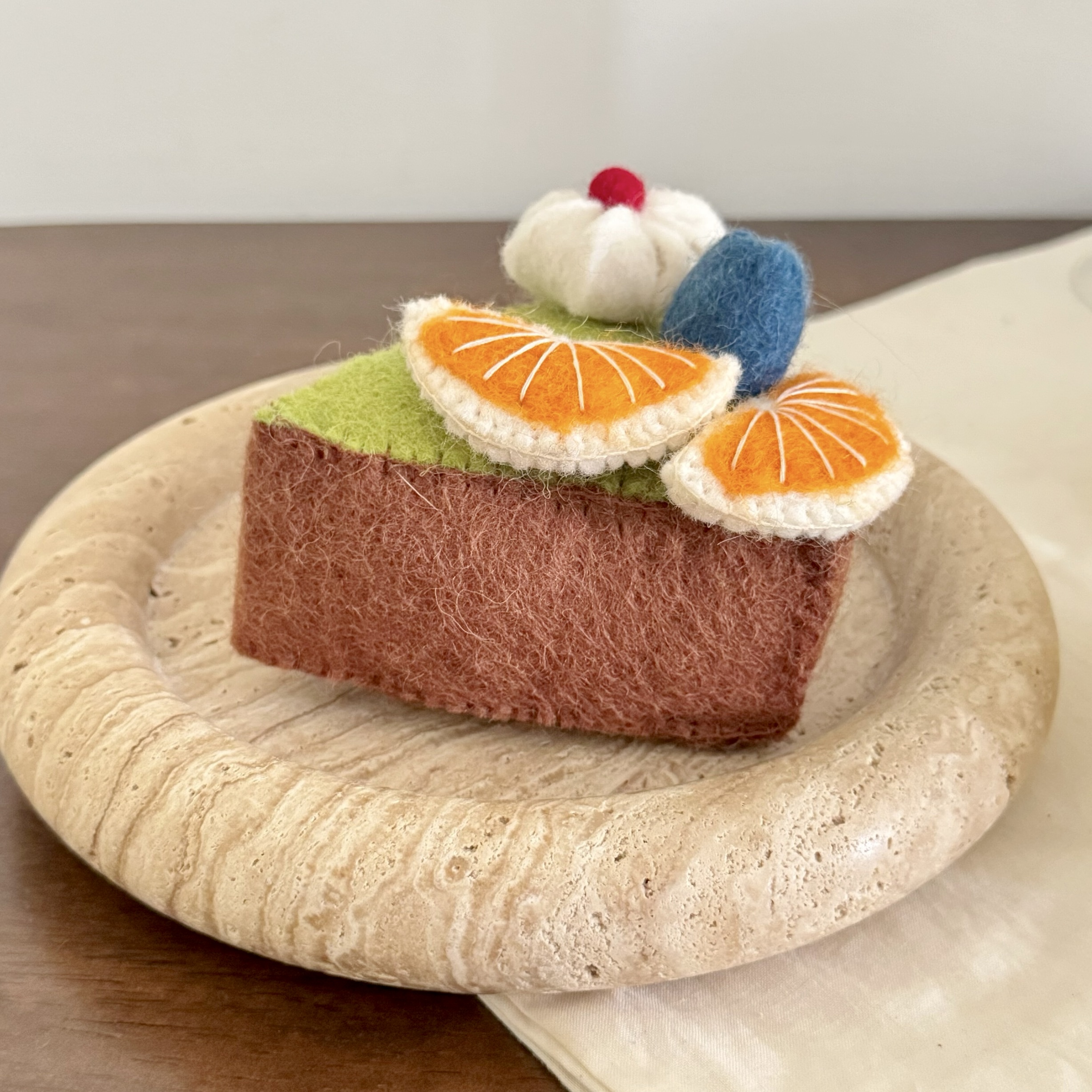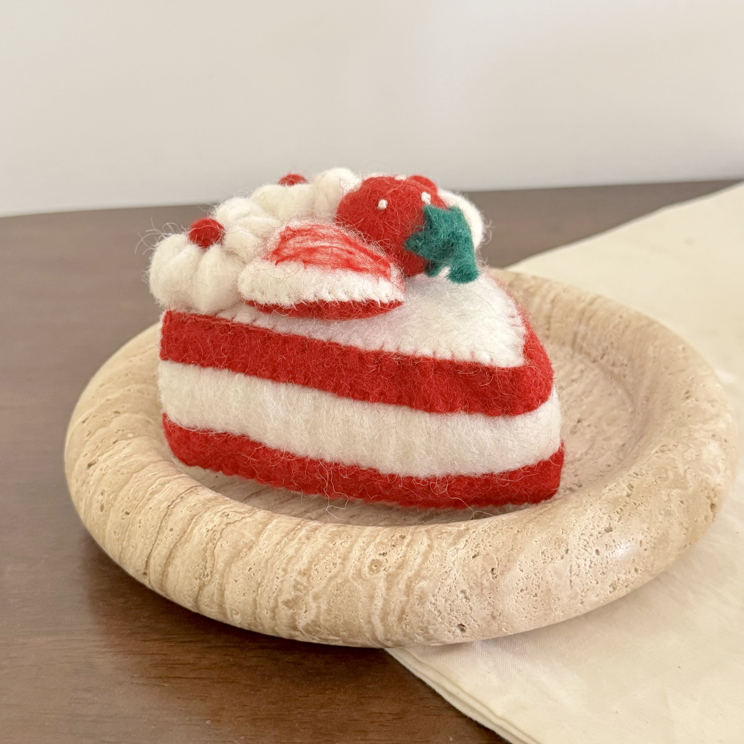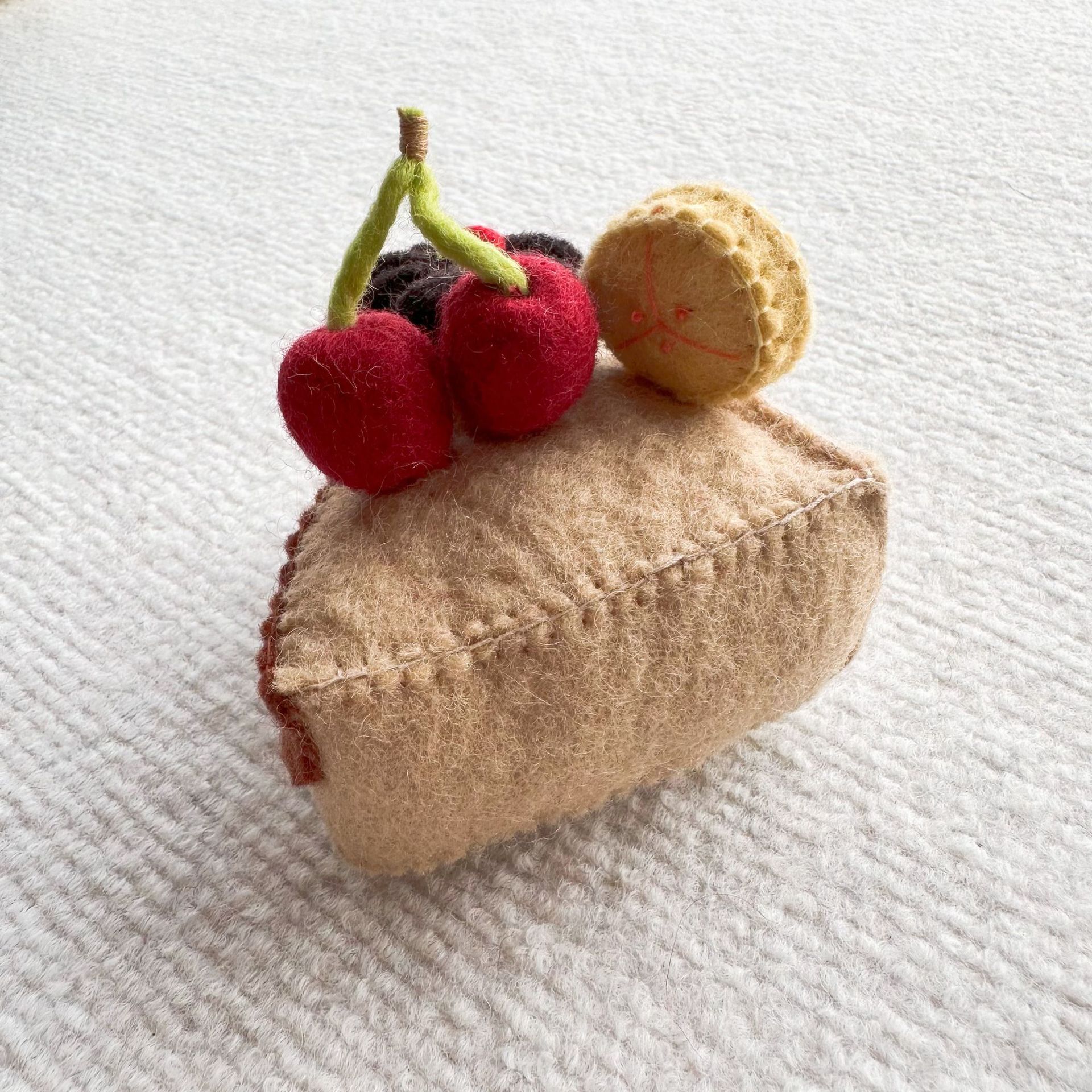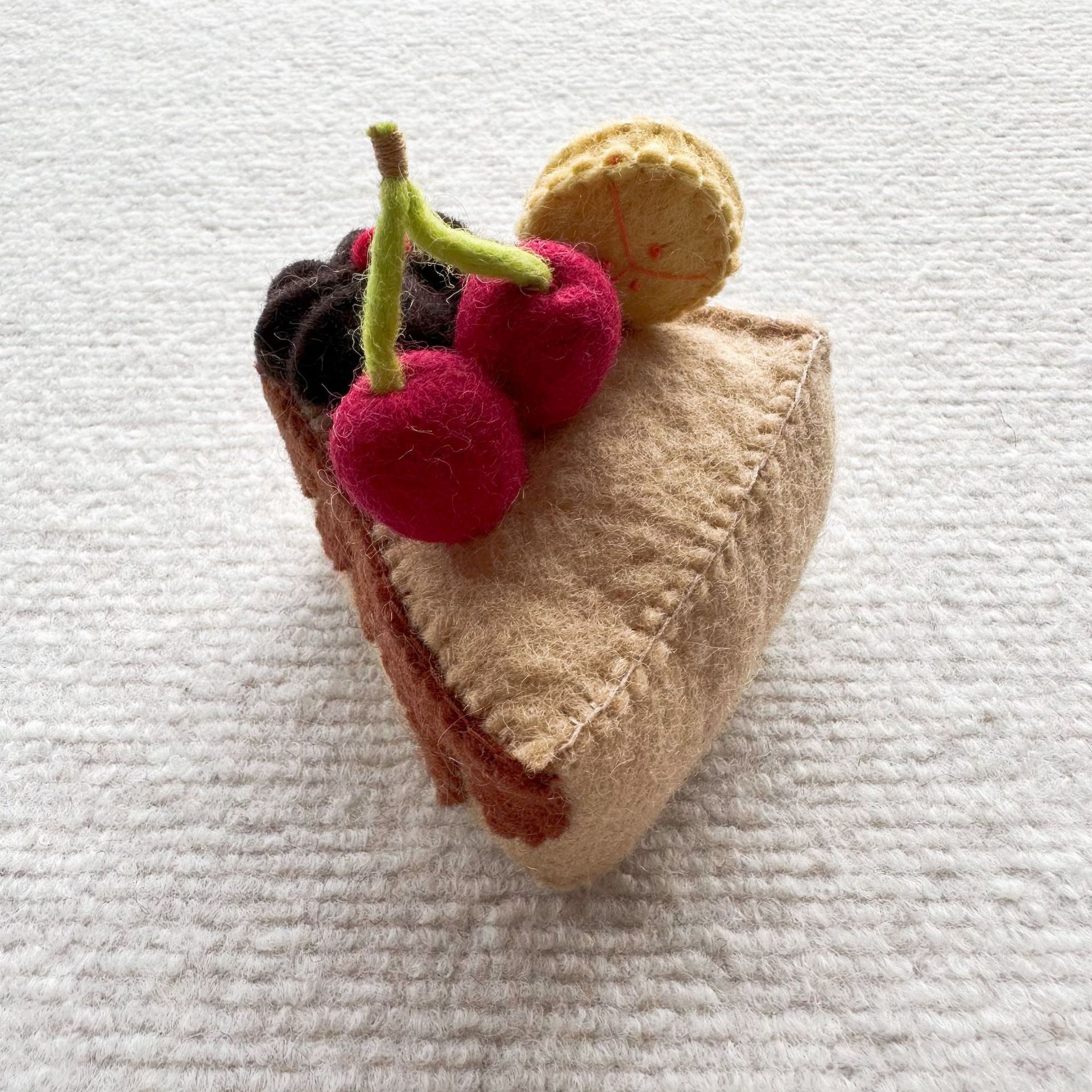 Each felt cake slice is thoughtfully curated with high-quality wool felt sheets, felting needles, and a durable foam base. The texture of natural wool gives every dessert slice a soft, cloud-like appearance, while the layering technique mimics the rich folds of real pastry. As you needle each piece into shape, the wool fibers interlock gently, creating a solid yet fluffy texture that feels both comforting and rewarding to work with.