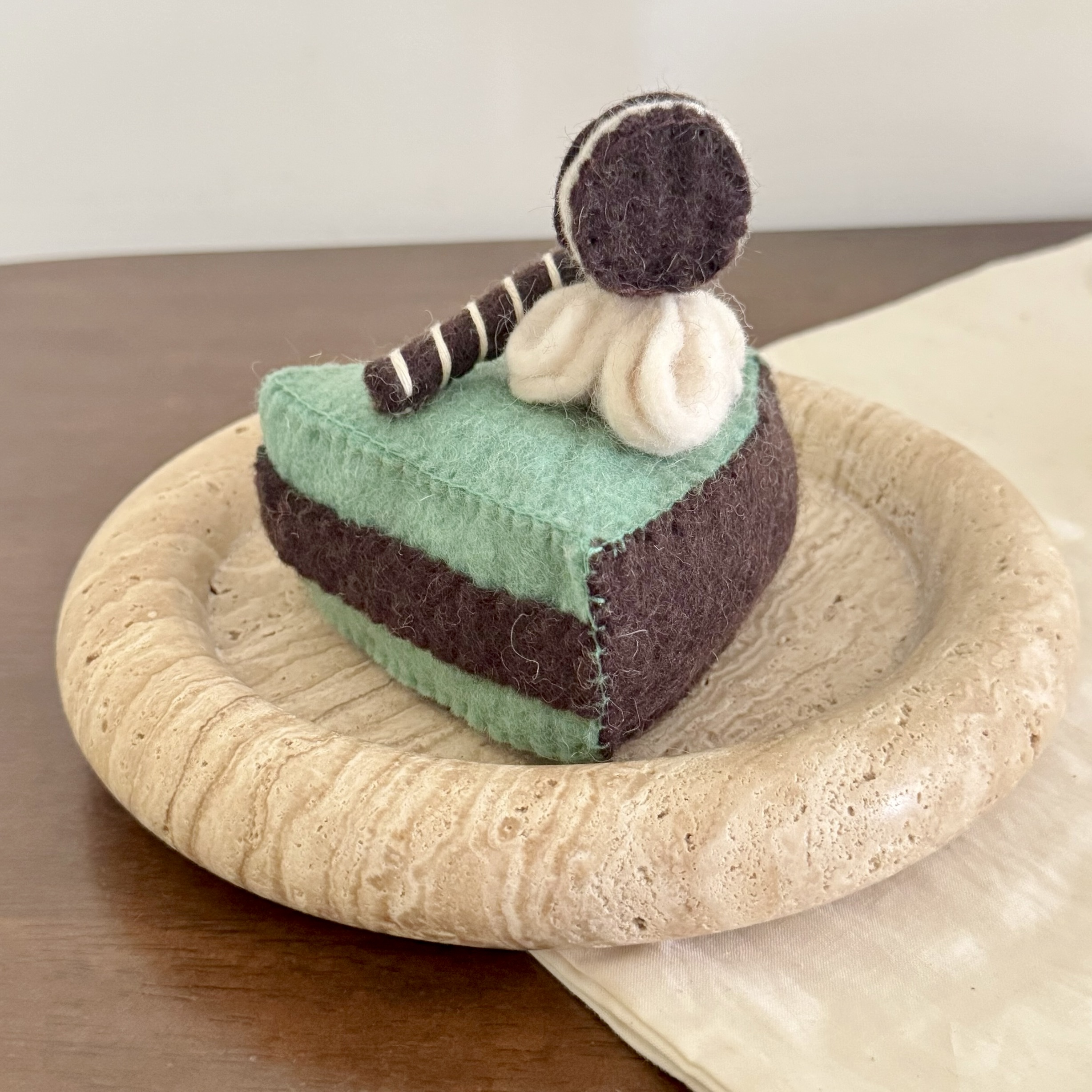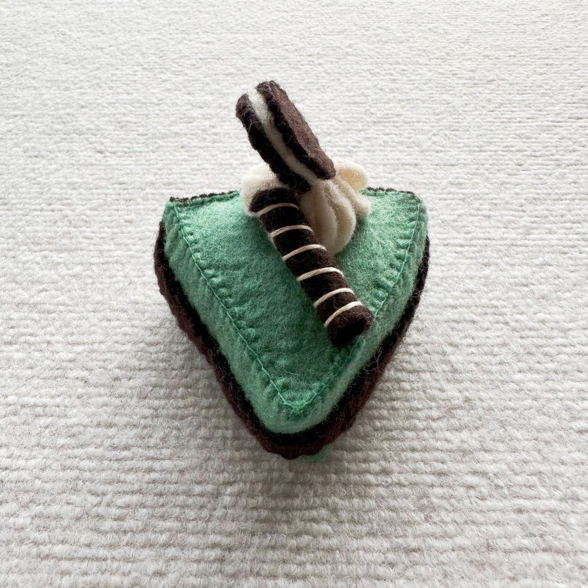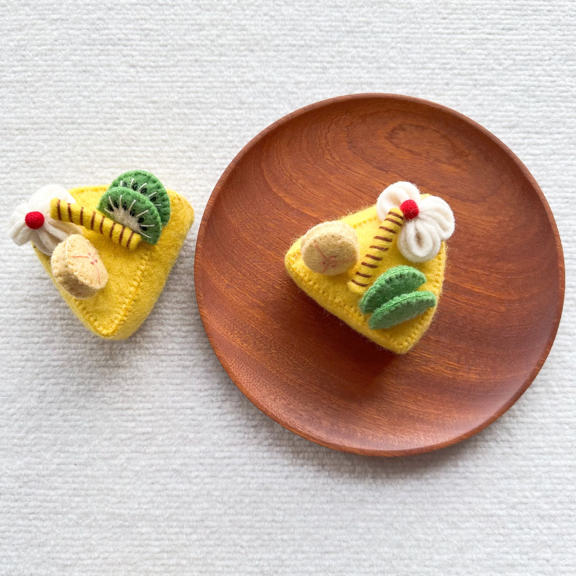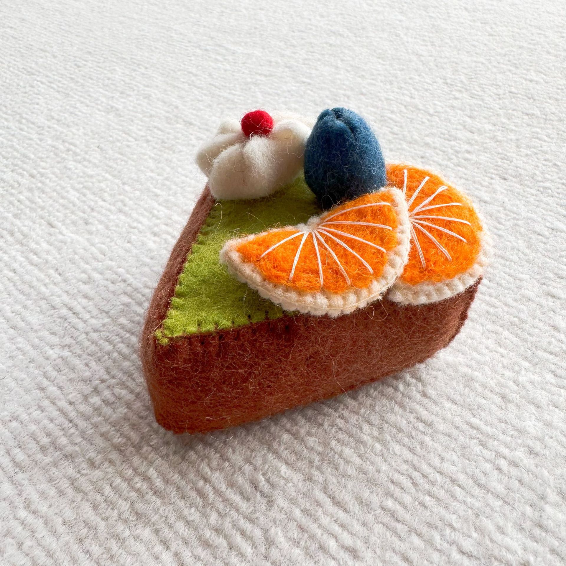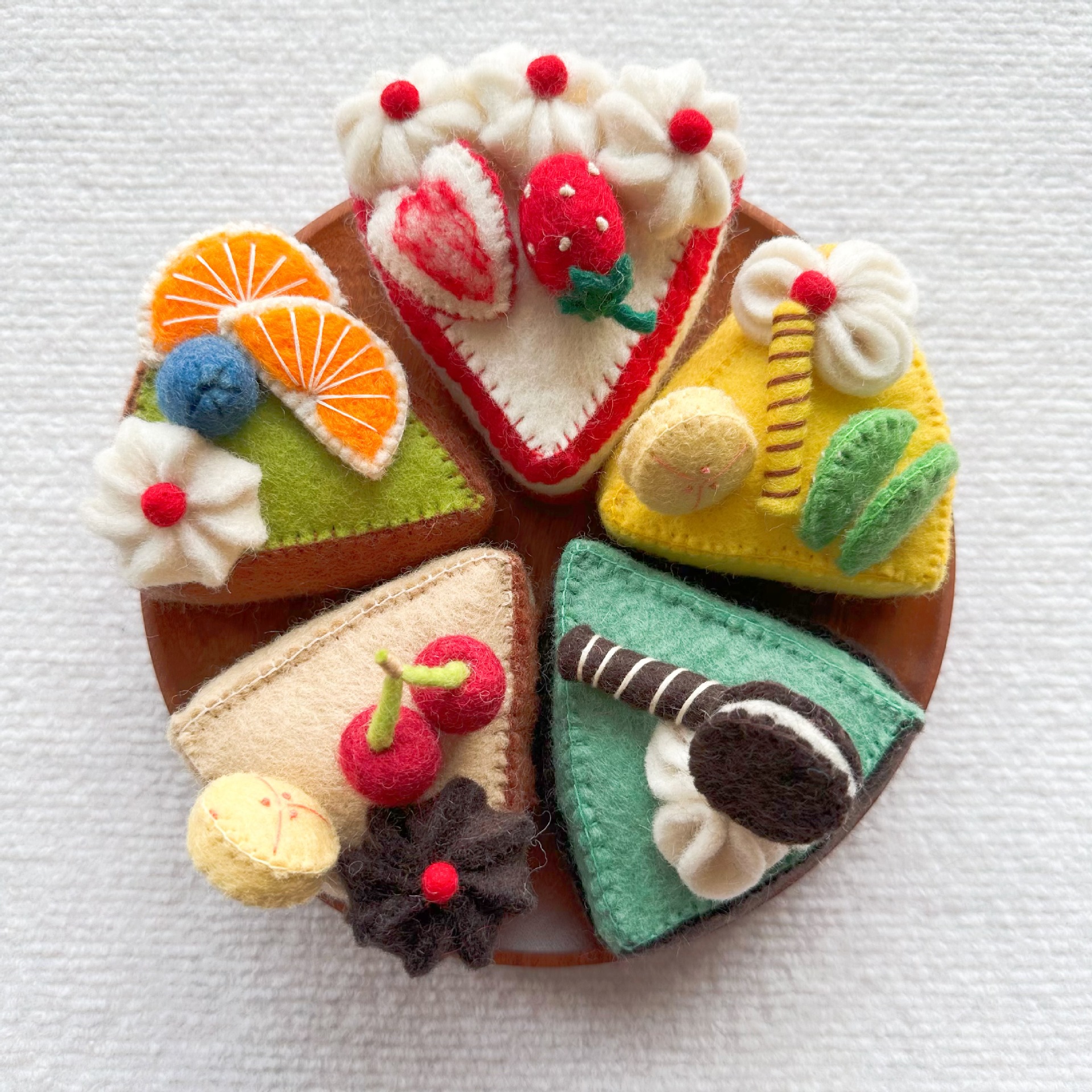 Felt Cake Slice DIY Kit – 5 Handmade Wool Felt Dessert Models with Realistic Strawberry, Chocolate, Matcha & Mint Pastry Designs