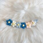 Inspired by spring gardens, this design features a row of hand-crocheted 3D flowers in a soothing palette of light blue, white, pale pink, and soft orange-pink, each with a warm beige center. The colors blend seamlessly, giving the impression of a fresh flower crown resting gently on your pet’s neck. Perfect for outdoor photoshoots, seasonal celebrations, or just adding a romantic, nature-inspired touch to your pet’s everyday look.