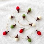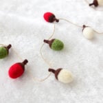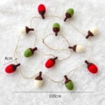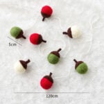 Charming Mini Wool Felt Acorn Christmas Garland Set of 2, Handmade Red Green White Holiday Decor, Cozy Rustic Seasonal Decoration