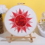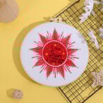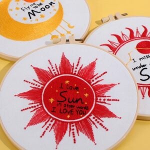 Once finished, these celestial embroidery designs look stunning displayed in their hoops or framed as wall art. The combination of bright gold, deep red, and soft white threads against the fabric creates a striking contrast that naturally draws the eye. Whether you hang them in a bedroom, studio, or living space, they bring an atmosphere of warmth and inspiration. The Star, Sun, and Moon DIY Embroidery Kit is not just a project but a way to create timeless handmade pieces that will brighten your home with creativity and meaning.