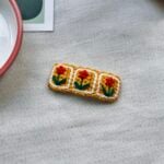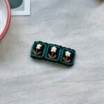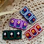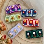 This collection features eight carefully designed crochet hair clips, each with its own color palette and embroidered flower. From deep wine tones to soft pastels, every design reflects a different mood and style. Whether you’re drawn to bold contrasts or subtle earth tones, there’s a clip in this set that will complement your outfit and reflect your personality. Wearing them feels like carrying a small piece of art in your hair.