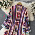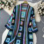 A bohemian crochet cardigan is more than just a piece of clothing—it is a story woven in vibrant colors, intricate patterns, and the artistry of handmade craftsmanship. This vintage-inspired knit coat celebrates freedom, individuality, and creativity, making it the perfect choice for those who love fashion with soul. With its hollow-knit design and patchwork granny squares, it blends retro charm with modern boho chic style, creating a unique wardrobe staple that feels both timeless and fresh.