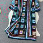 This long crochet cardigan comes in two striking variations, each radiating its own personality. The red crochet cardigan bursts with warmth and vibrancy, featuring multicolored granny squares accented with playful round motifs along the front. It embodies energy, passion, and the romantic spirit of bohemian fashion. On the other hand, the blue crochet cardigan combines a dark base with pops of blue, red, and green, creating a bold yet sophisticated aesthetic. Its unique mix of round and square motifs adds depth and movement to the design, making it a standout piece for those who love statement fashion.