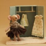 Designed to stand upright, each mouse offers flexibility — as part of a decorative shelf, a bedside companion, or the star of a child’s latest adventure. Their gentle forms and muted tones make them ideal for nursery decor, blending effortlessly with both modern and vintage styles.
