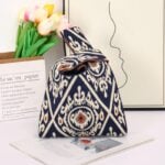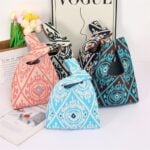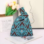 Handmade Atlas pattern handbag – Woven Tote Bags for Women No Lining Soft Knit Geometric Ethnic Style Handheld or Wristlet Purse